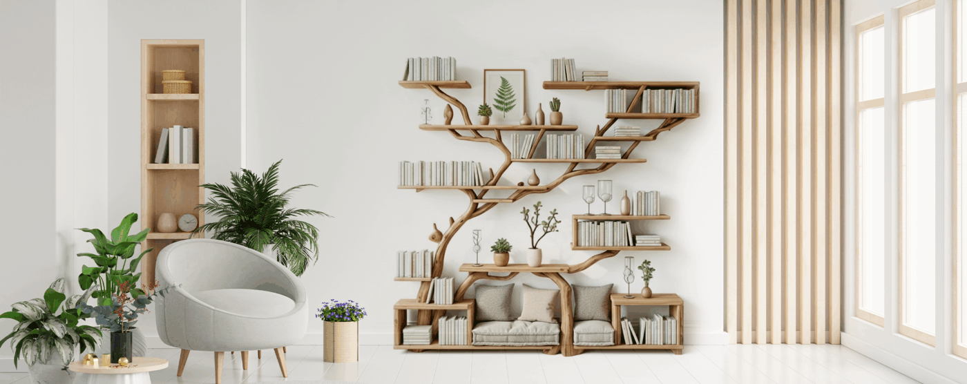 We are a team of artisans and designers crafting beautiful, tree-shaped wooden bookshelves. Each piece is a unique blend of natural elegance and functional design, bringing the warmth of the forest into your home.